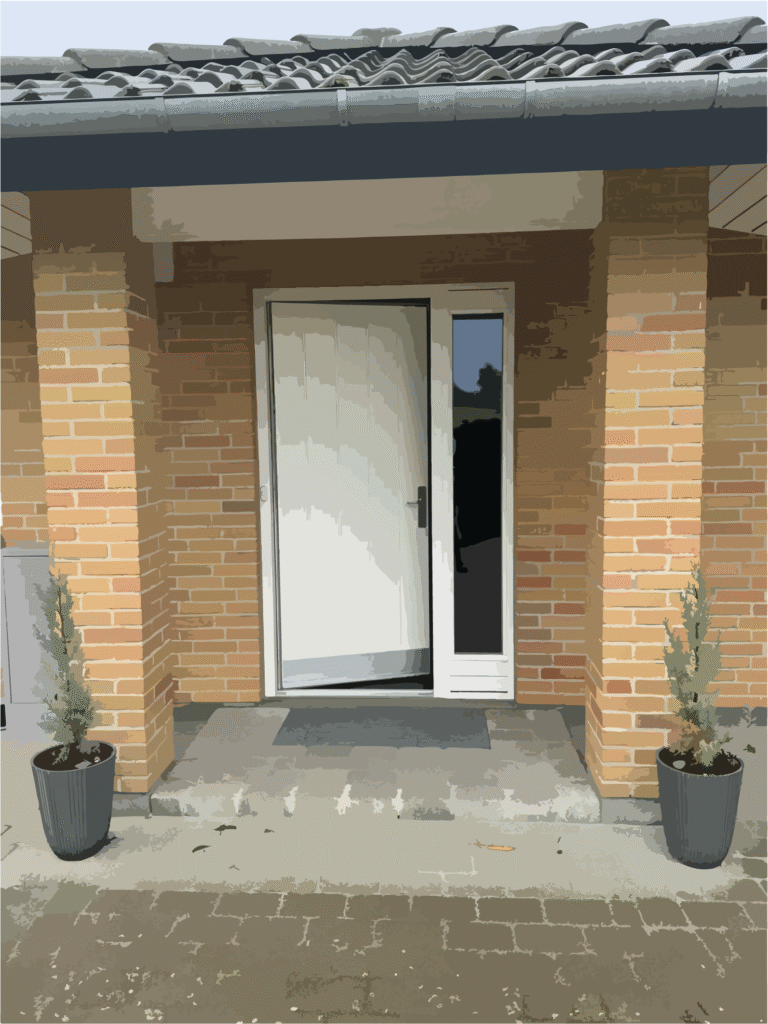 Så, nu står der tre drenge foran vores hus og nu skal den tredje dreng også lige nå at tage mod til sig. Inden han når det er den ene af drengene gået hen til vores hoveddør. Min kone og jeg har selvfølgelig gemt os, så de ikke kan se os udefra.