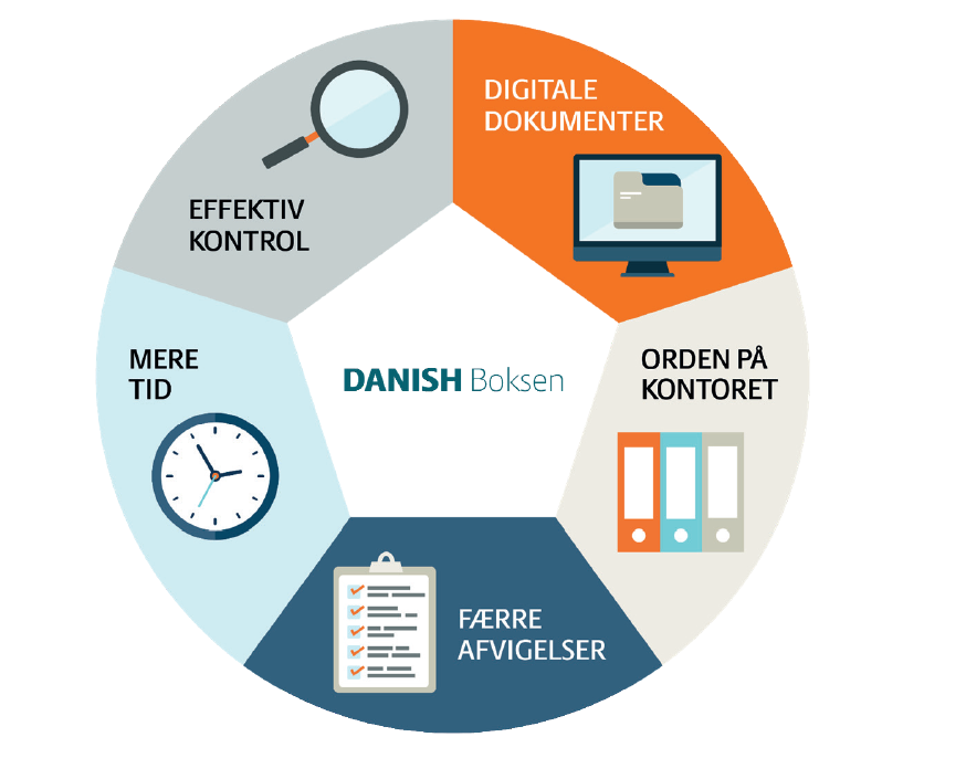 Når en griseproducent bliver udtaget til kontrol, så kan han benytte Danish Boksen til at fremvise dokumentationen. Det kan han gøre fra et device ude i stalden eller på sin desktop på kontoret. Danish Boksen er bygget op således at dokumenter, billeder osv. bliver uploadet løbende til indbakken hvorefter en autosorteringsfunktion finder ud af hvor de enkelte dokumenter skal placeres i arkivet.